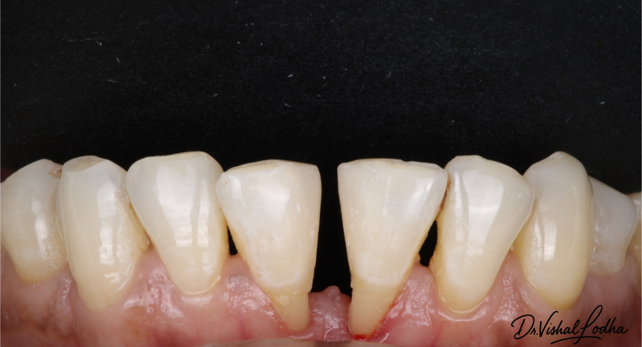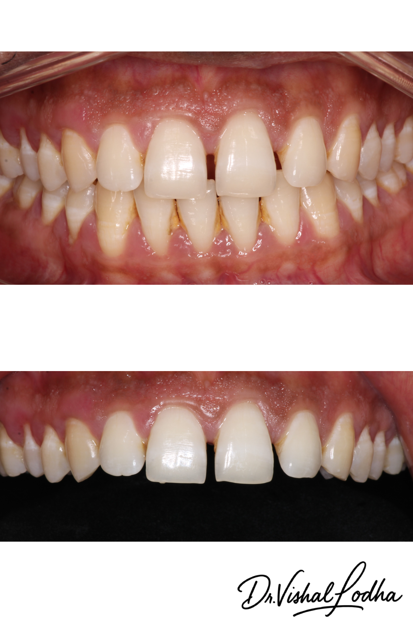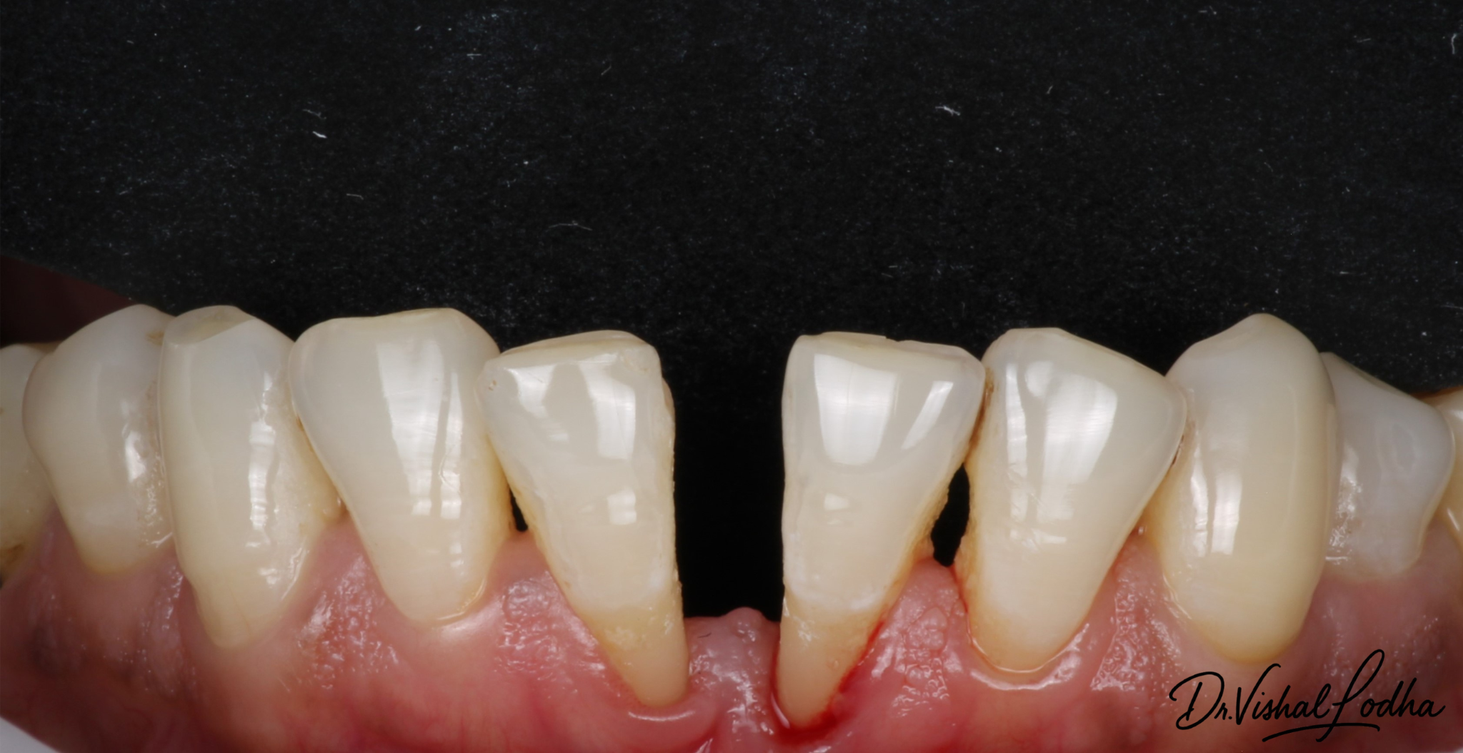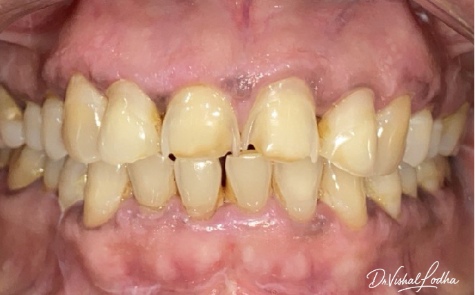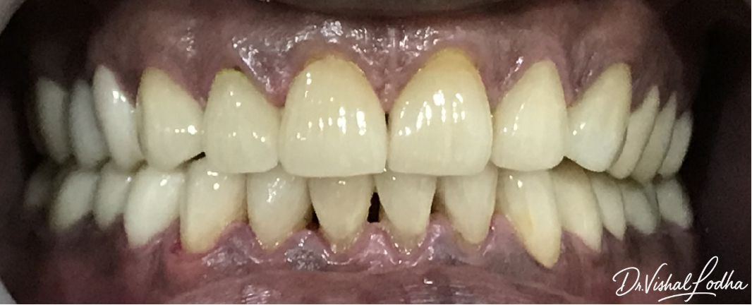 Space in lower front teeth managed with E-Max Crowns