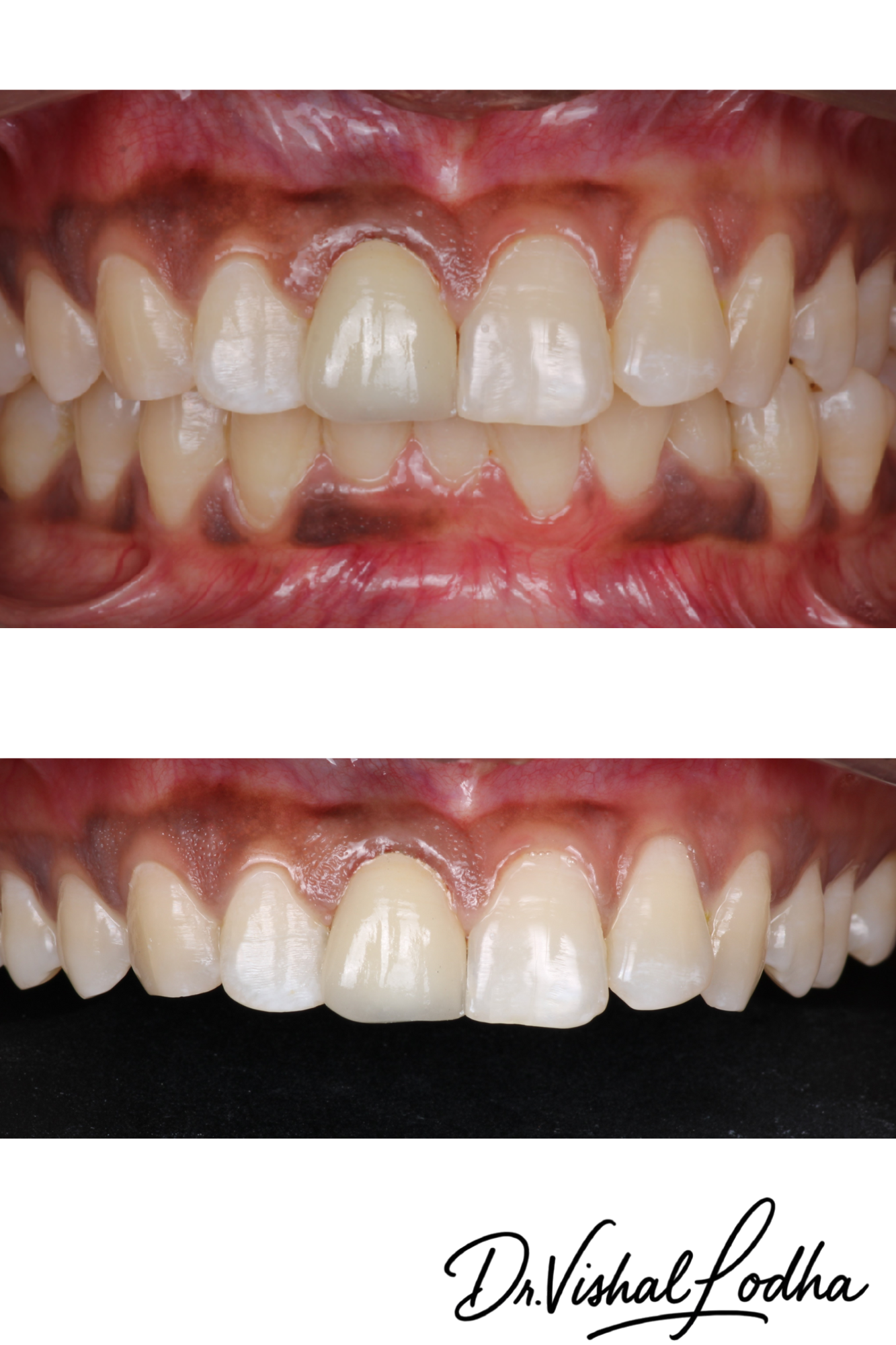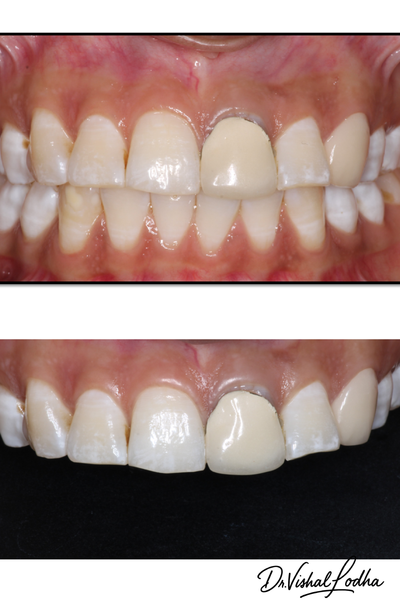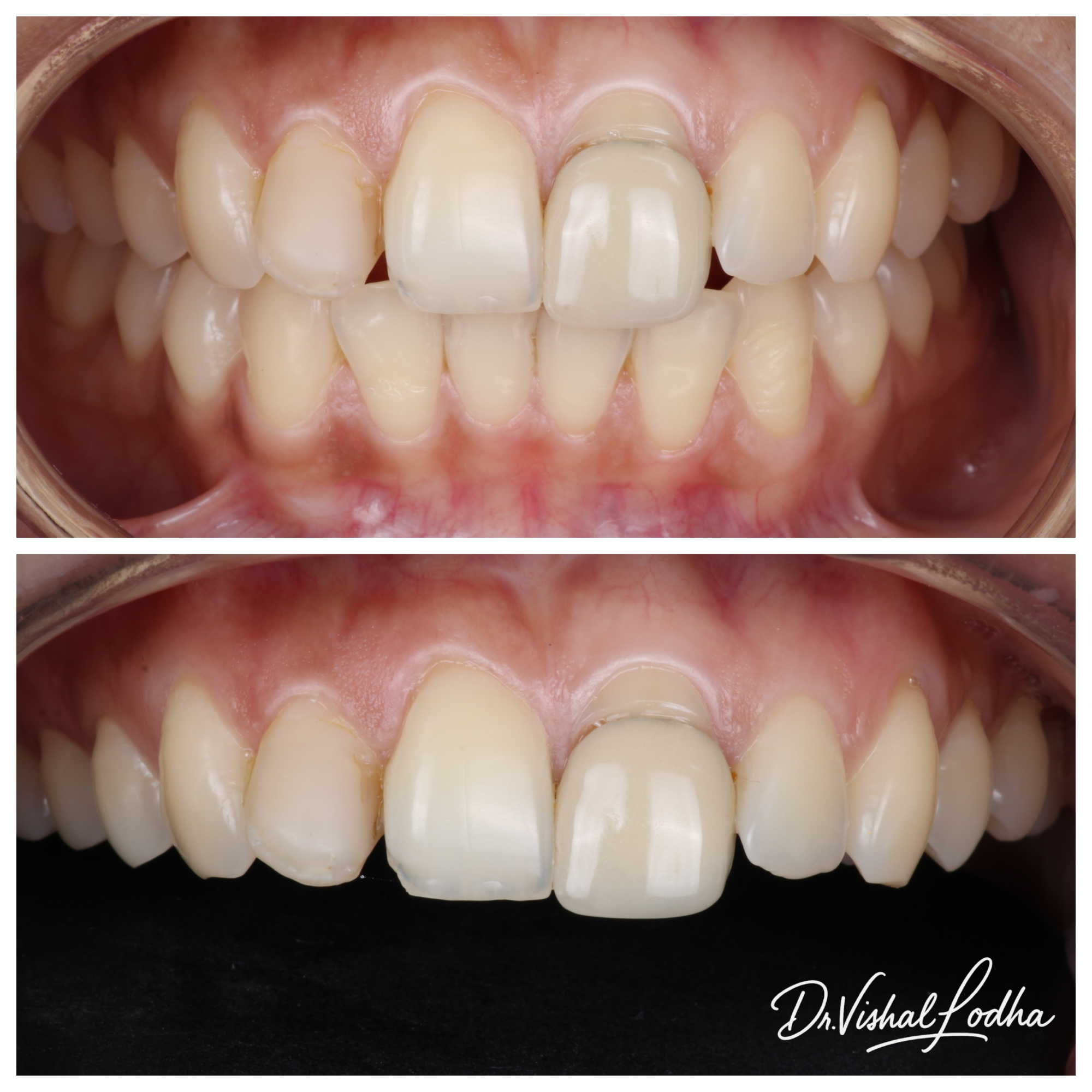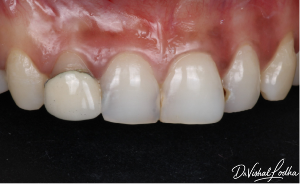 Unaesthetic crown corrected with a perfectly matched esthetic Crown