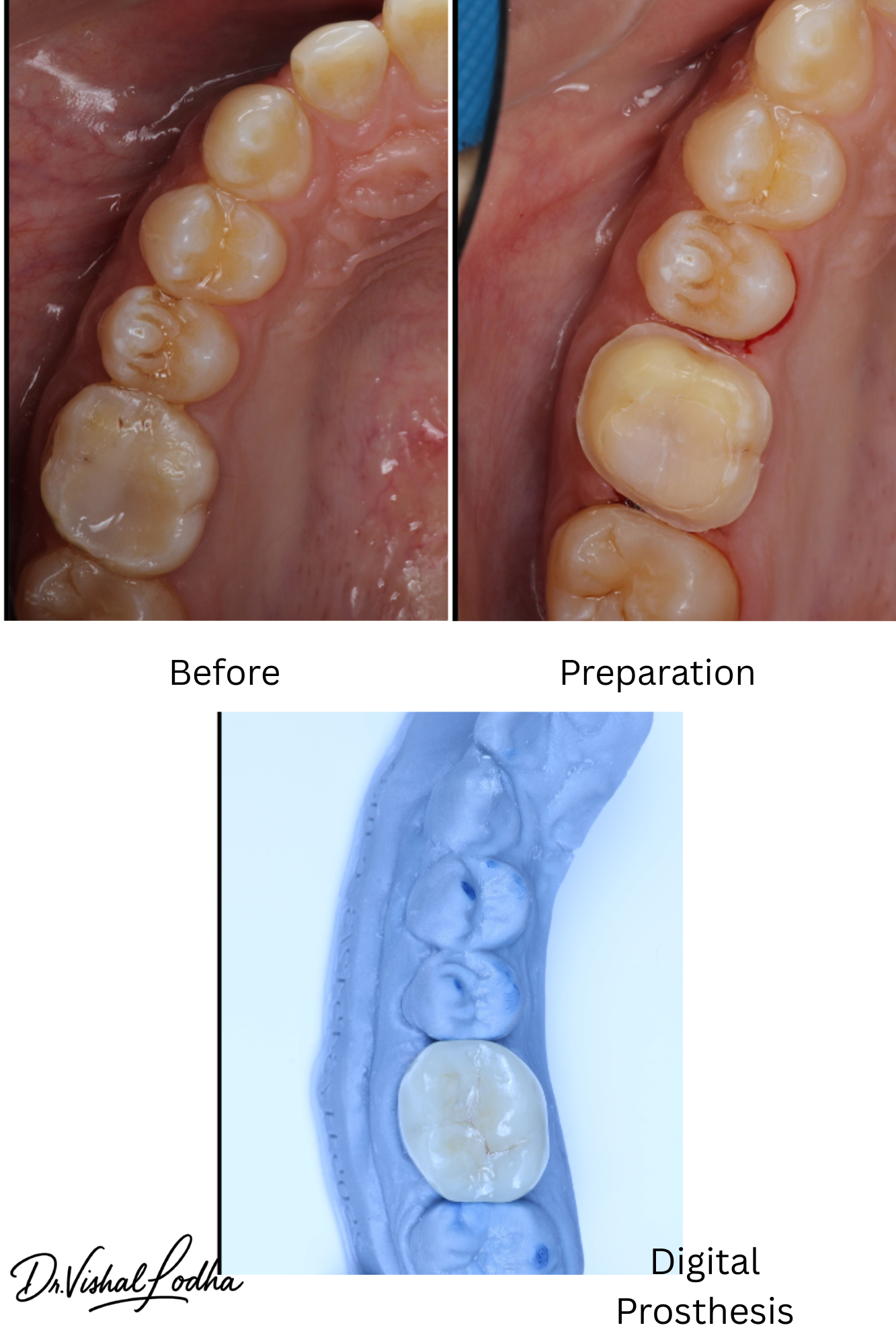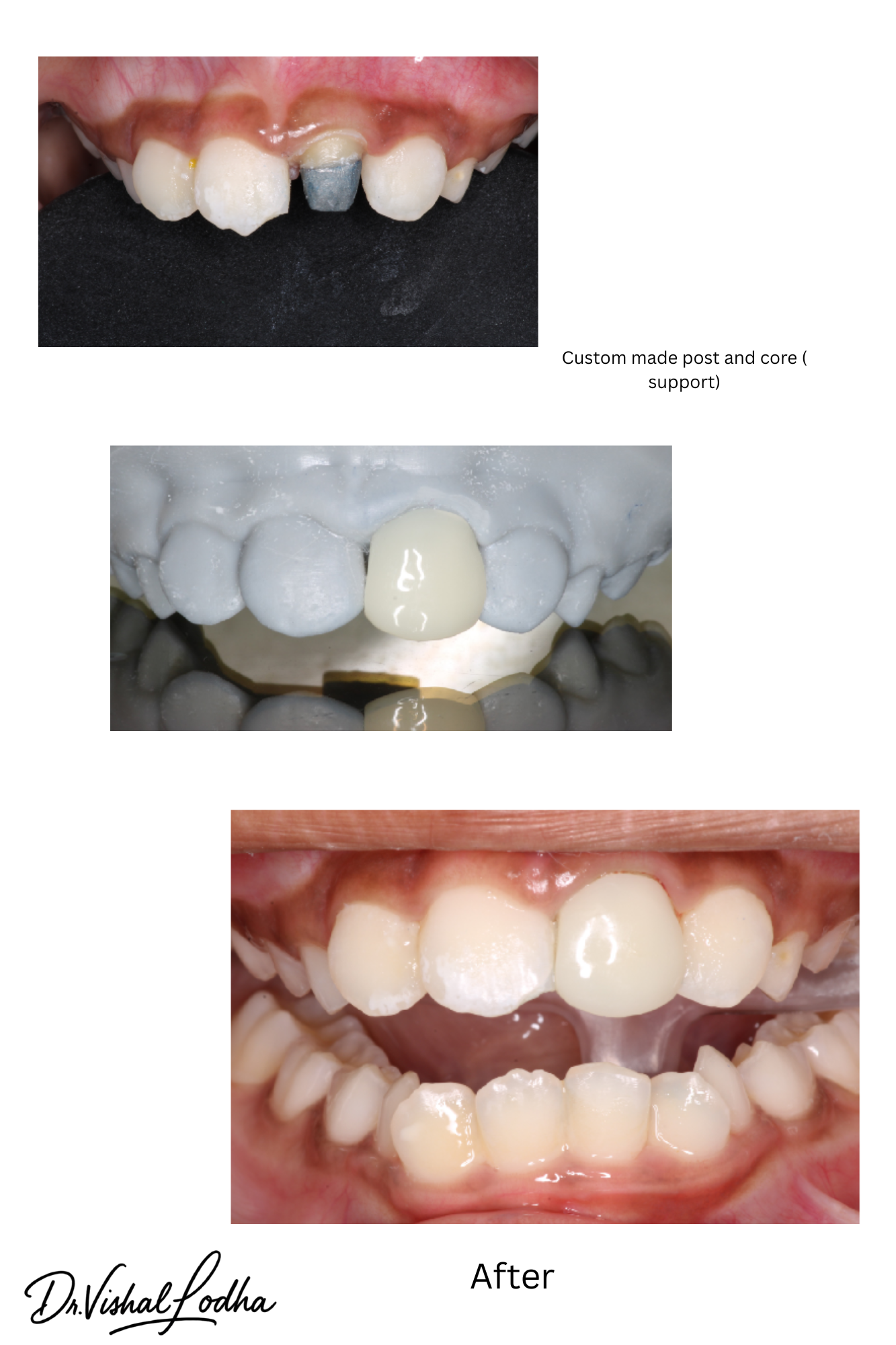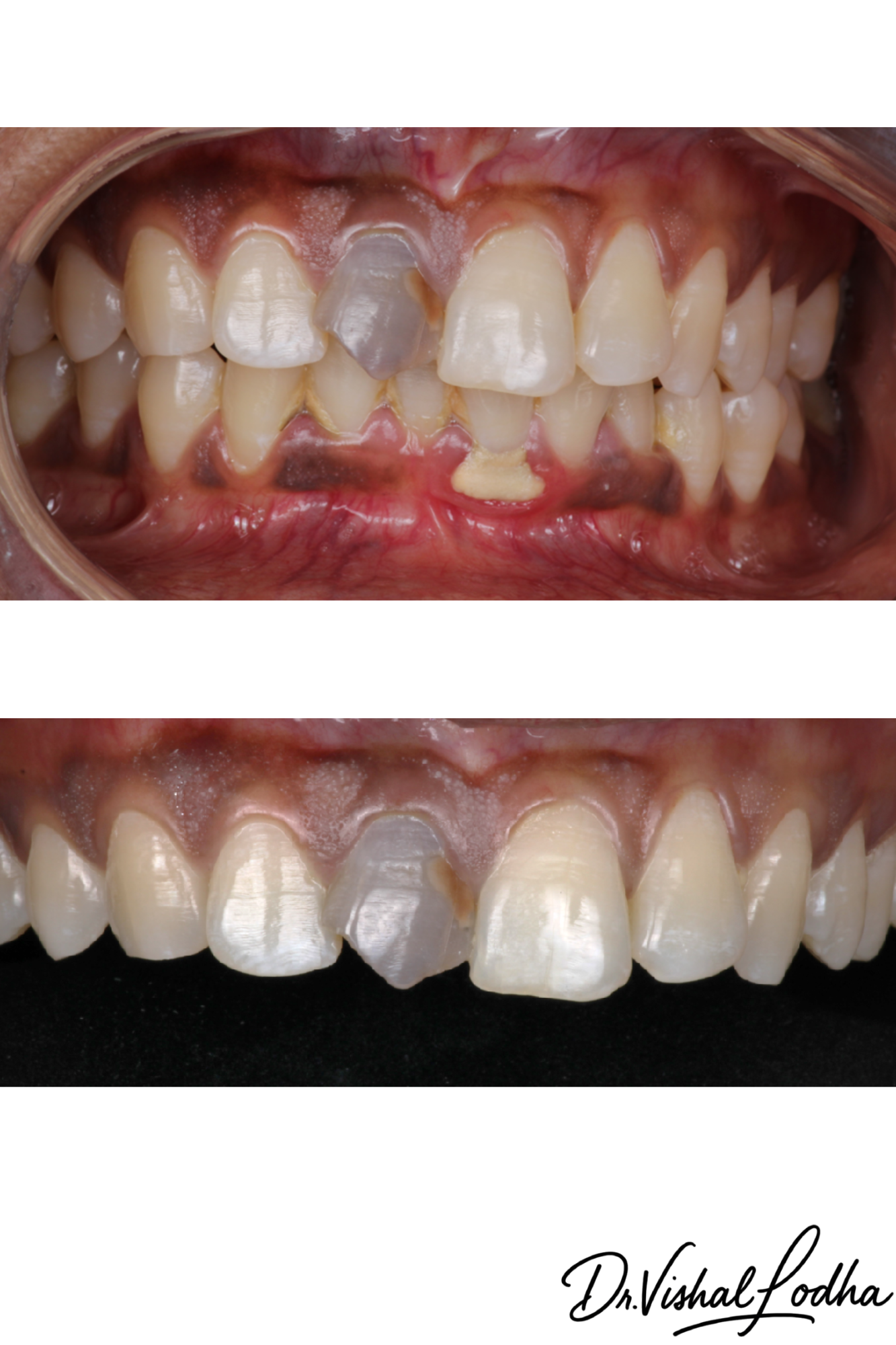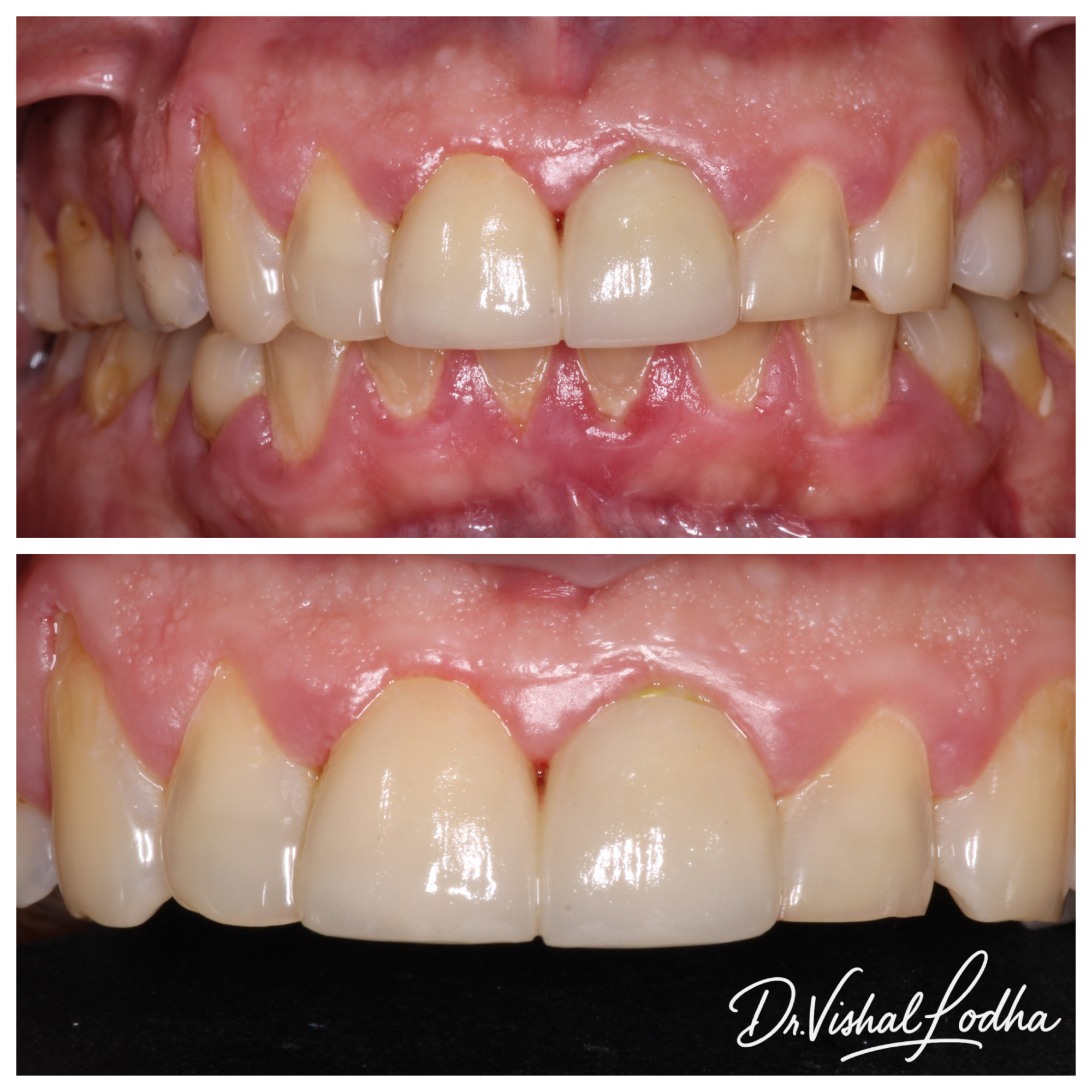 Unaesthetic crown corrected with a perfectly matched esthetic Crown
