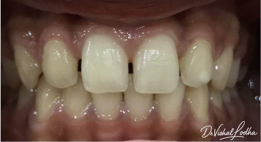 Gaps in upper teeth managed with Cosmetic Composite Filling in Single Visit